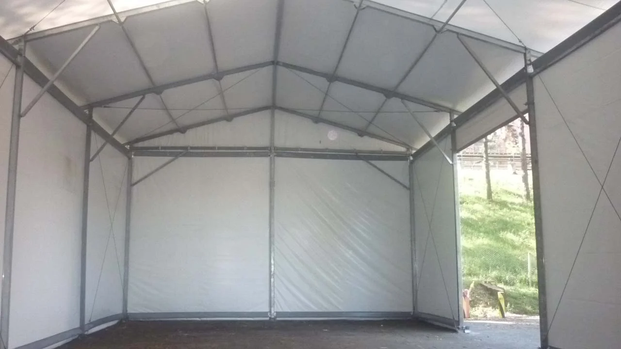 Cada cobertura para armazenagem da Eventhual é fixada diretamente ao chão, coberta por lona de alta resistência para oferecer máxima proteção contra sol, chuva e vento. Essa solução garante maior durabilidade e segurança para seus produtos, evitando desgastes e perdas.