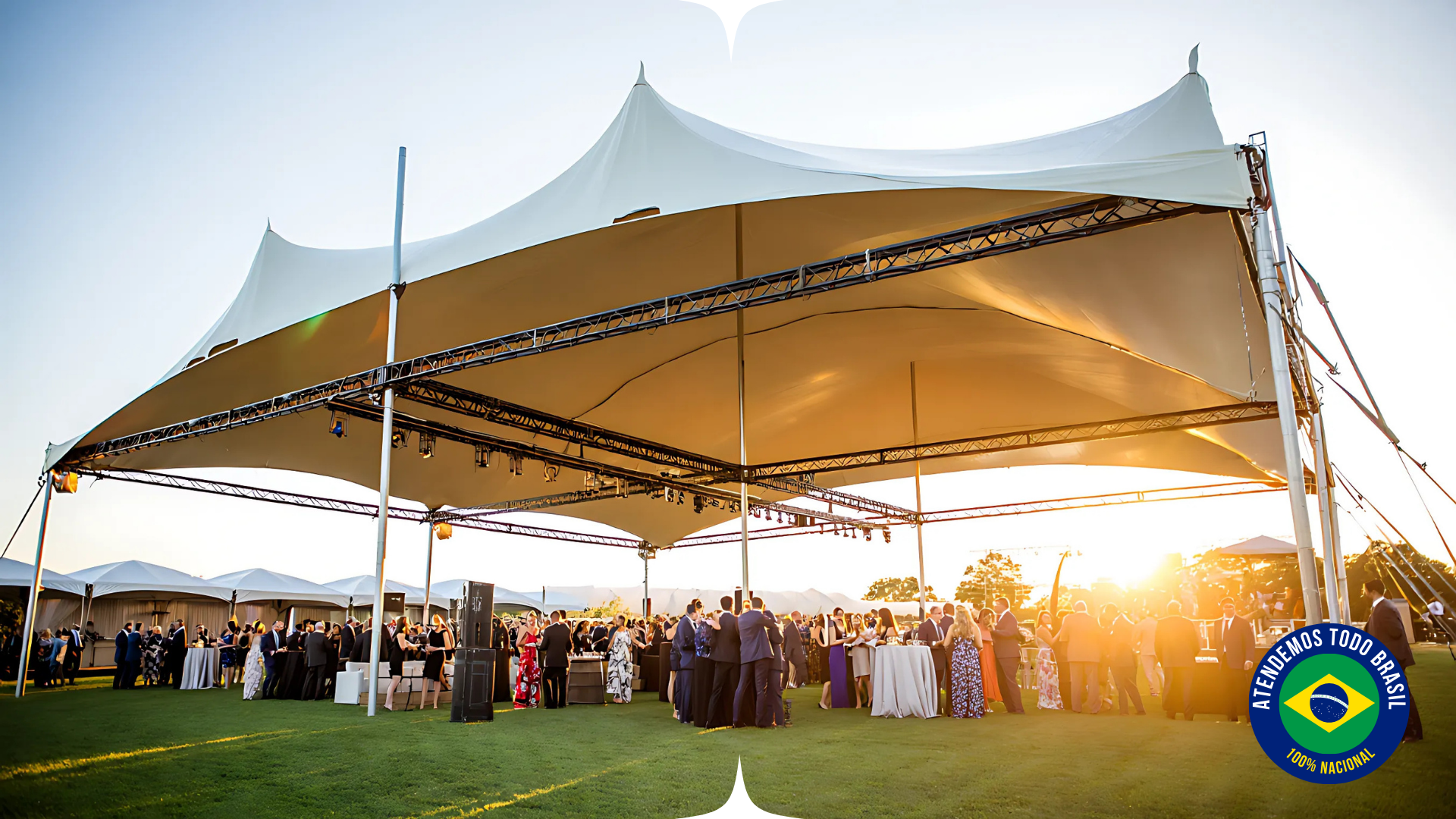 Todas as nossas coberturas para eventos são tratadas com Anti-Mofo, Anti-Chama e Anti-UVA/UVB, garantindo segurança, durabilidade e estética impecável.