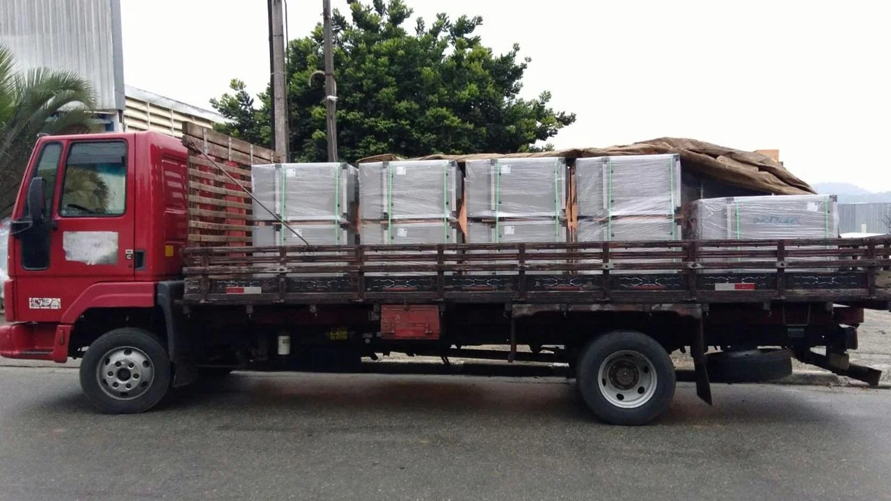 • Frota moderna e monitorada: caminhões novos, seguros e rastreados em tempo real;